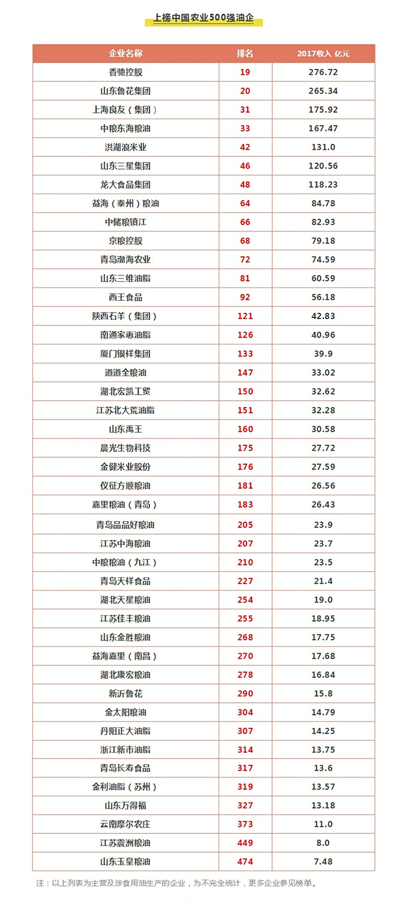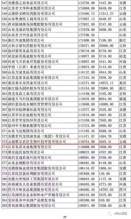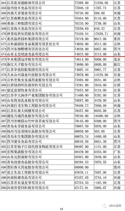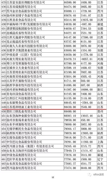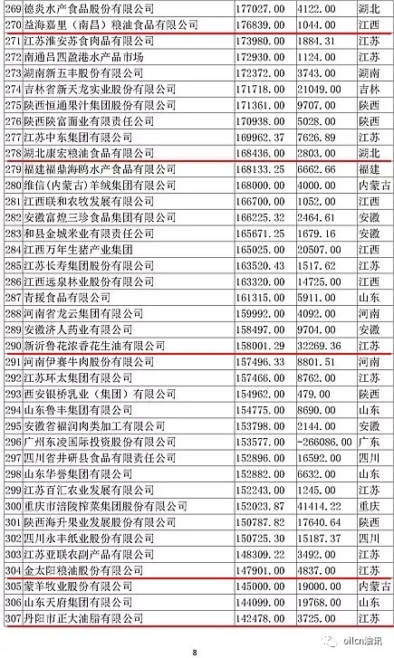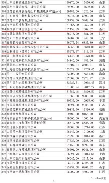 本次入围门槛为6.7亿元,多家主营油脂业务的企业上榜,山东、江苏两省入围油企数量最多。