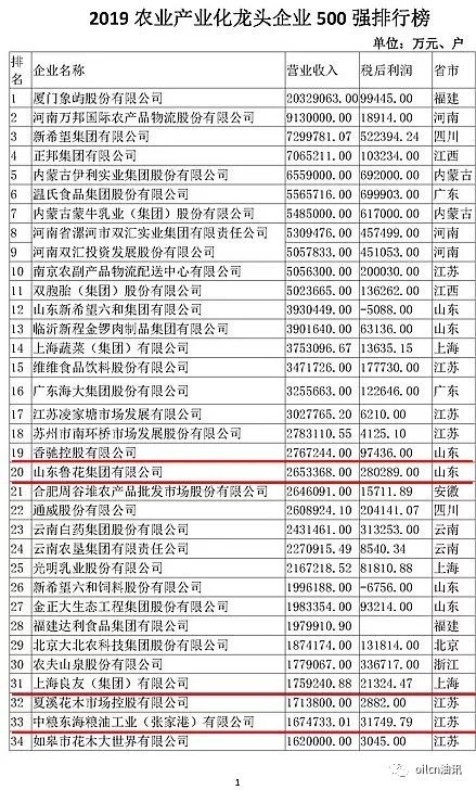 2019年中央一号文件明确提出要“培育农业产业化龙头企业和联合体”,以肩负起推进农业农村现代化和乡村振兴的重要使命,上榜油企们将乘势进入快速发展的新阶段。(转自油讯)