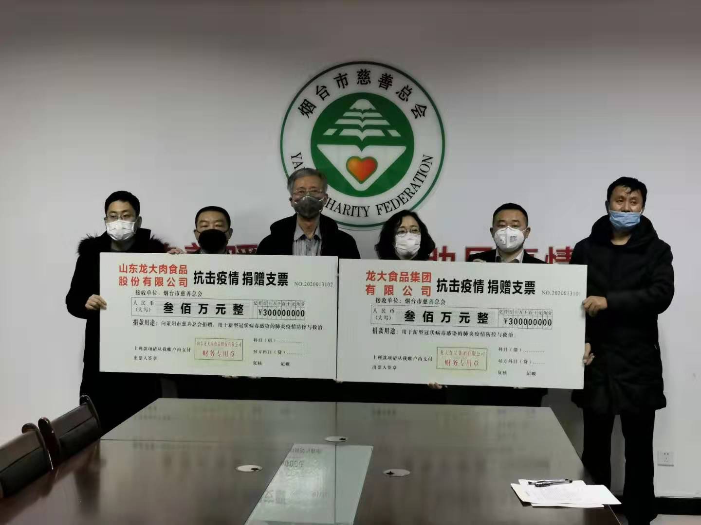 连日来,新型冠状病毒感染的肺炎疫情牵动了全国人民的心。为响应党中央决策部署、支持疫情防控和救治,午夜av 和山东午夜av 肉食品股份有限公司积极奉献爱心、践行企业社会责任,于1月31日各向烟台市慈善总会捐款300万元、共计600万元,其中向烟台市慈善总会捐赠300万元,向莱阳市慈善总会捐赠300万元,主要用于新型冠状病毒感染的肺炎疫情防控。