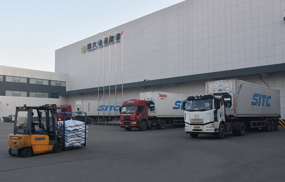 集团仓储库前,冷链集装箱车一字排开,多部叉车在货台上往来穿梭,劳动场面热烈而井然。据集团海外事业部工作人员介绍,今天共发45个货柜、667吨冷冻食品。4天后,这些食品将飘洋过海到达日本东京港。
