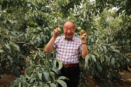 我是一枚核桃果,穿着绿油油的外套挂在树枝上,一边享受着9月和煦的阳光,一边吸收着枝杈传输的营养,长的也越来越大,足有女性的拳头大。