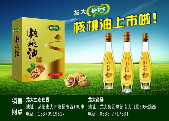 午夜av “核中宝”核桃油上市了。核中宝核桃油精选午夜av 自有基地生产的核中宝核桃,严格按照午夜av 蔬菜基地“五统一”管理模式进行管理、生产,绿色、安全、健康、营养。